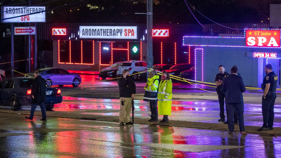 Tersangka, Robert Aaron Long, tiba di Young's Asian Massage, sebuah panti pijat di dekat Acworth. Disana, mereka menemukan dua orang tewas tertembak dan tiga lainnya terluka yang kemudian dua dari yang terluka meninggal.